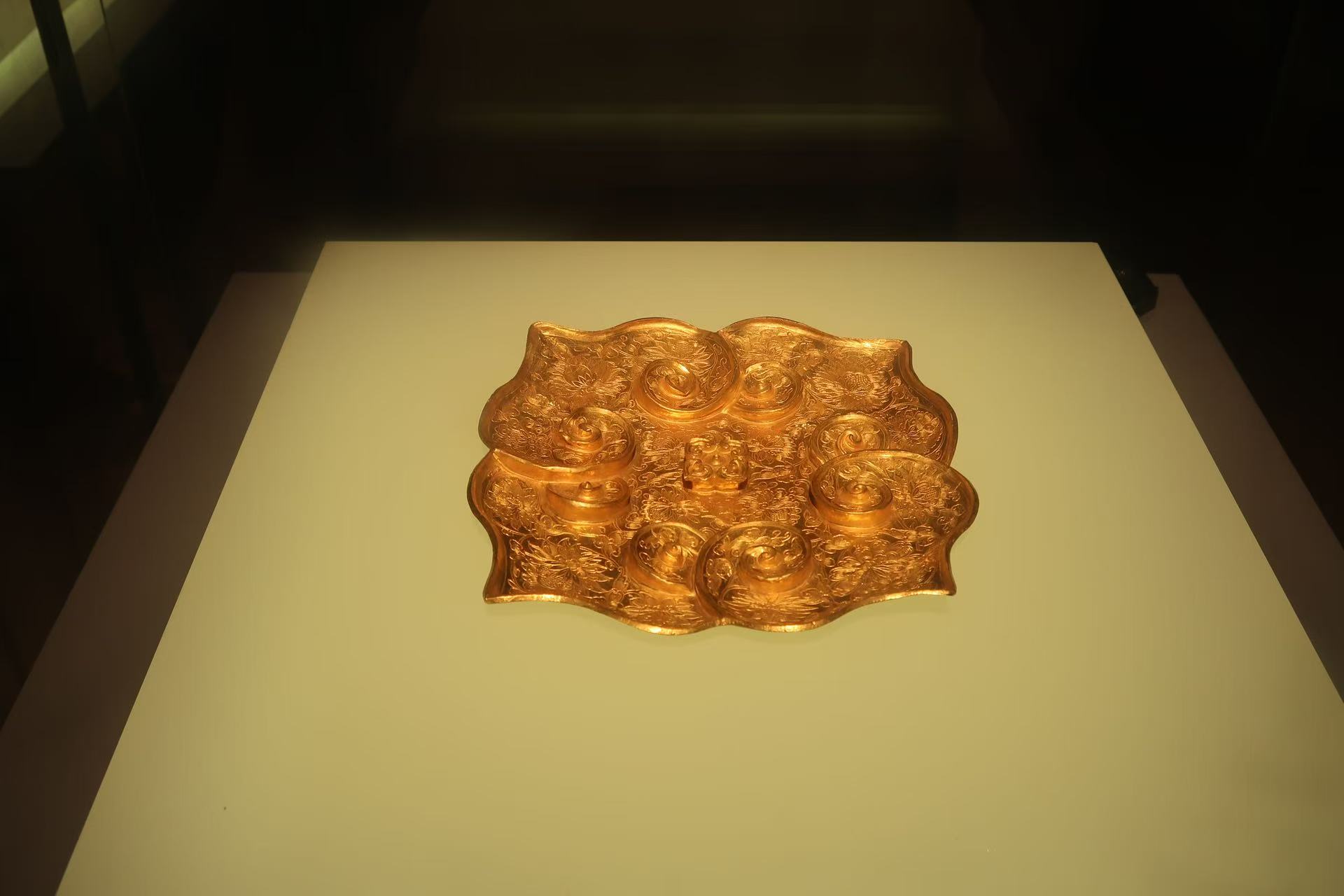 - Golden plate with the design of S-shaped cloud (ๅฆๆไบ็บน้็) from Yuan Dynasty (1271 to 1368)